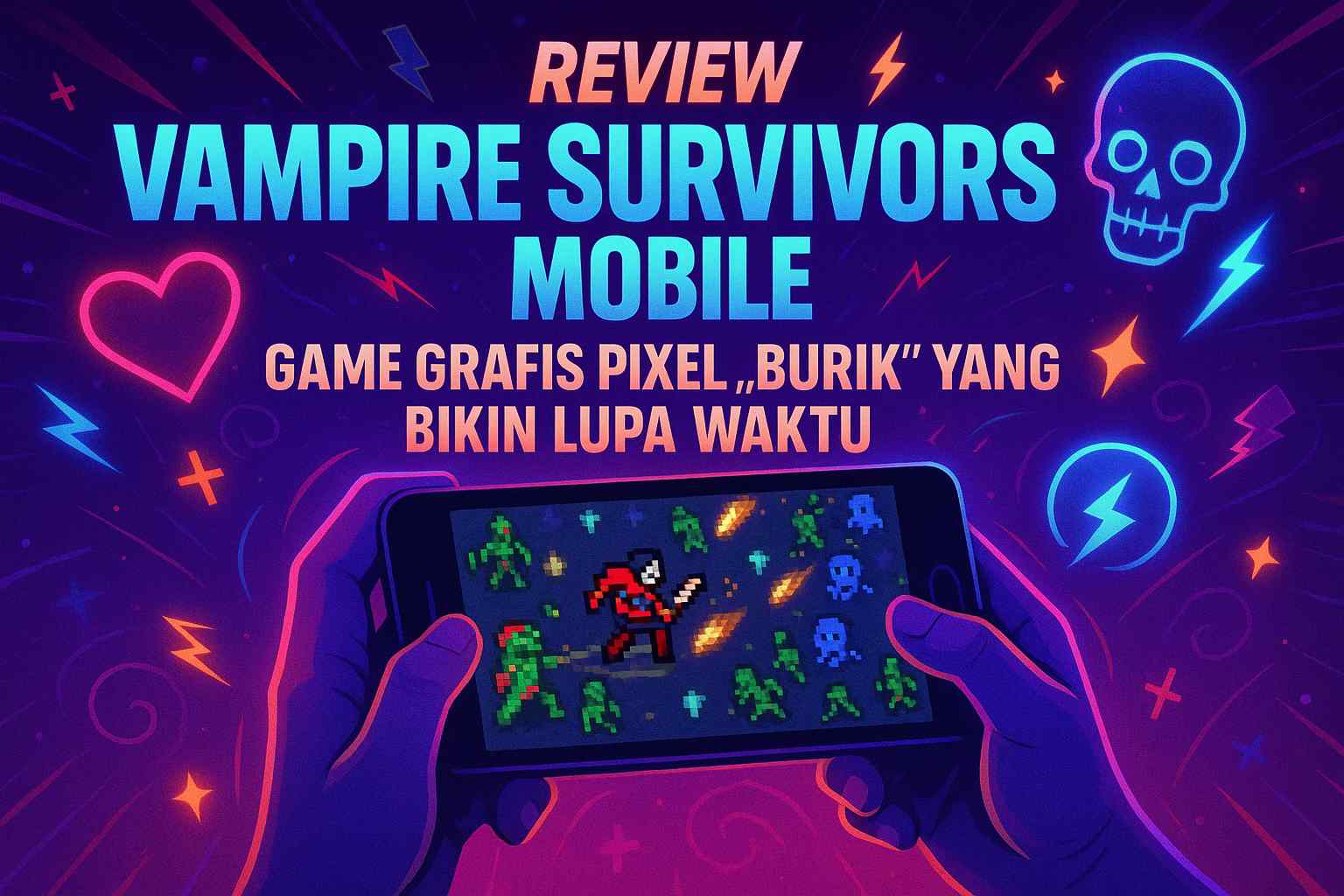 Lu pernah ngerasain download game cuma buat ngebunuh waktu 10 menit, eh tiba-tiba subuh? Vampire Survivors itu predator waktu yang paling licik. Pertama kali gua liat screenshot-nya di Play Store, gua langsung mengerutin kening. “Grafis pixel kayak game Flash abal-abal ini emang masih laku?” Tapi setelah 6 jam nonstop, baterai drop 40%, dan mata berkunang-kunang, gua ngerti kenapa game ini viral. Ini bukan soal visual—ini soal gameplay loop yang bikin otak lu kelaparan “run” berikutnya.